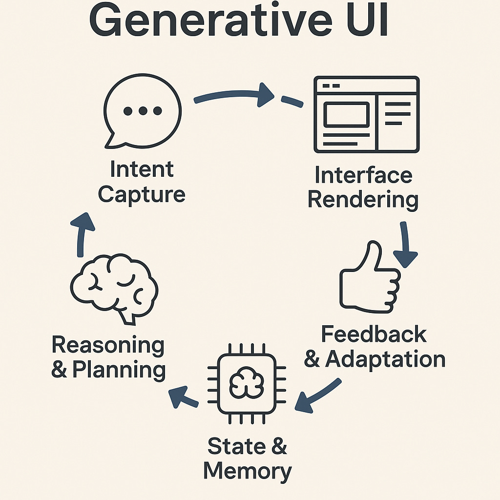 This term is relatively new. It emerged more formally as a term around 2023, but the concept of adaptive interfacing has been around for much longer. It blurs the line between software as merely a product, and software as a living agent. You could think of early examples of this as dynamic dashboards or front-ends built from configurations and API definitions. The creation and adoption of GenUI entails having a new design language to accompany it.