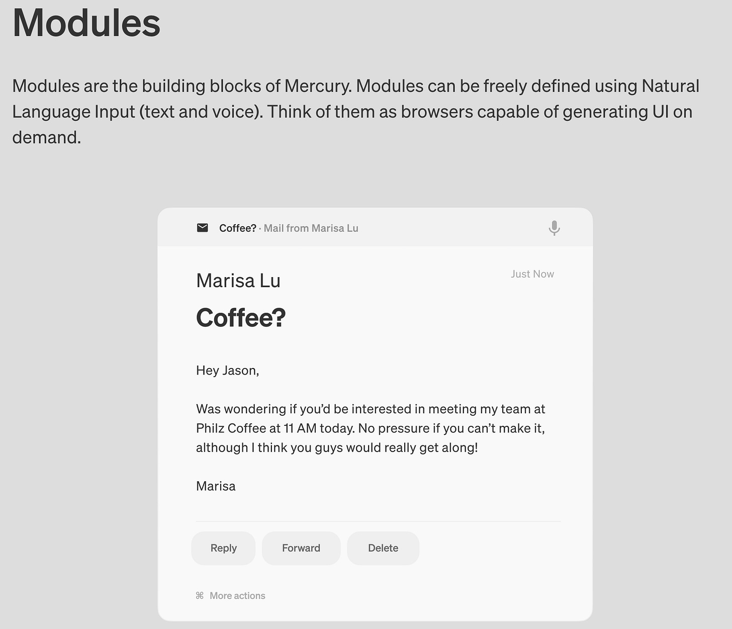 As AI evolves, how we imagine UI and interacting with not only AI, but computers, evolves. Like MercuryOS, this project points towards a future that frames digital environments around meaning and collaboration instead of apps and folders.