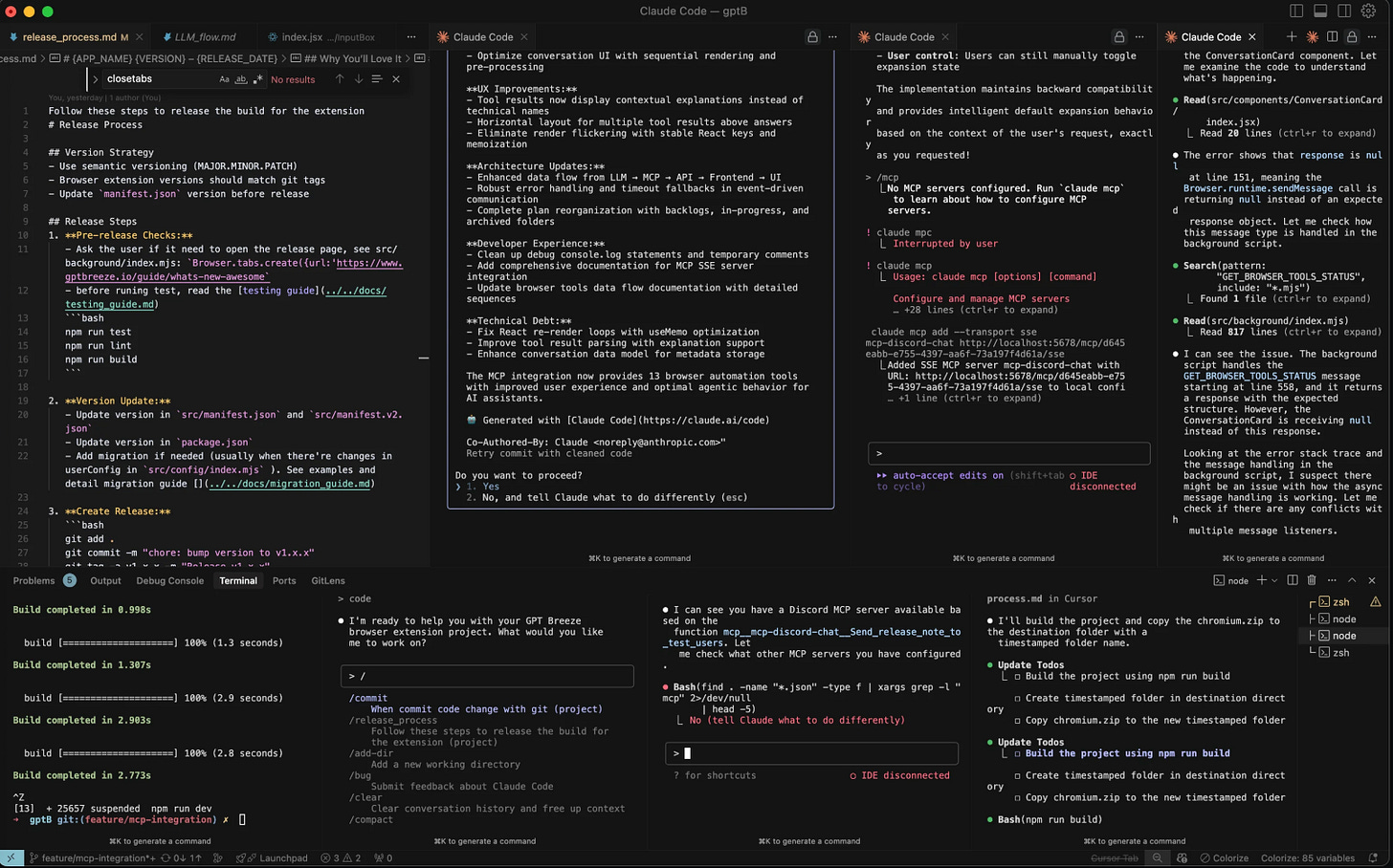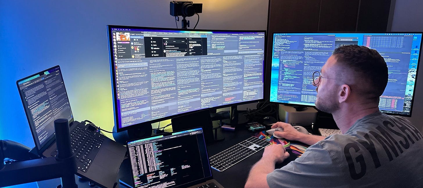 I had three Claude Code sessions running in Ghostty in separate tabs, with an Antigravity agent revising specs, while debugging an APK that was failing to compile in Android Studio. At that same time, I had Gemini and ChatGPT both running deep research on a topic I was considering writing about, and Cowork updating my personal docs via MCP in Notion.