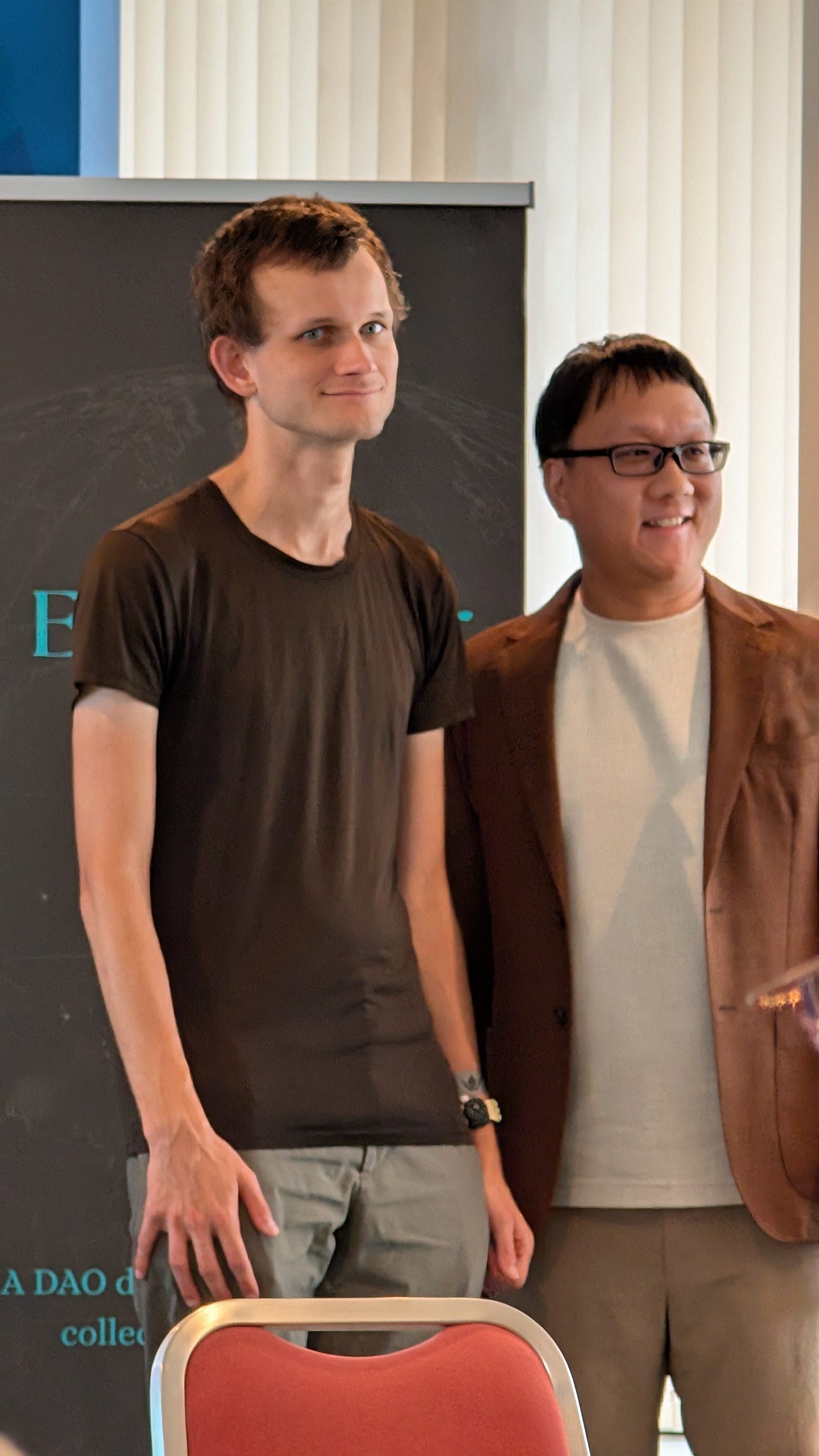 At one point, Andy (from Fenubushi Japan) asked Vitalik during the talk how Asia has influenced him. The crowd waited, and Vitalik ultimately said that he ‘had no real way of knowing how precisely he was influenced by Asian culture’. This struck Andy by surprise, who noted that Vitalik’s X account has aspects of zen influence in the description.