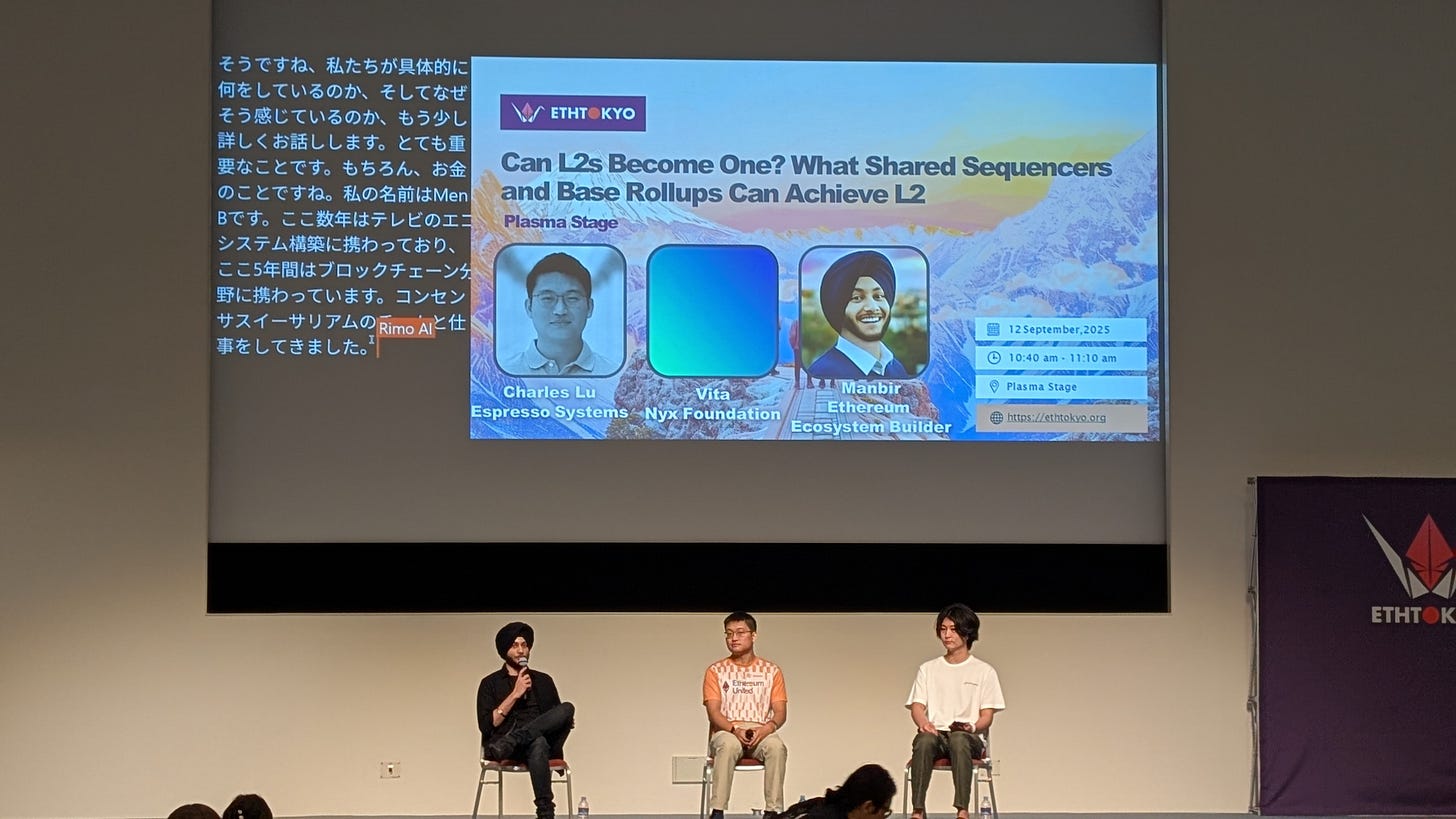 The conference had a healthy mixture of talks, from deeper technical dives (a talk on post-quantum cryptography delivered in Japanese) to more cultural (On-chain IP and Neo-Culture).
