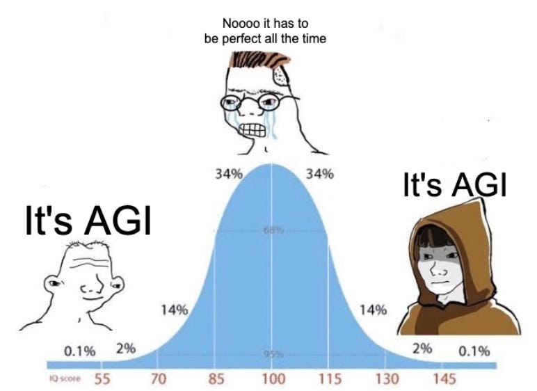 Today, the definition of AGI has changed even more. Now, AGI (roughly) means the following: